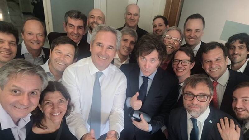 Hubo un gran encuentro en el despacho de Caputo. Además del Ministro, el Presidente Milei, el vocero Adorni, estuvieron los principales economistas del equipo de Caputo y luego hubo una gran selfie.