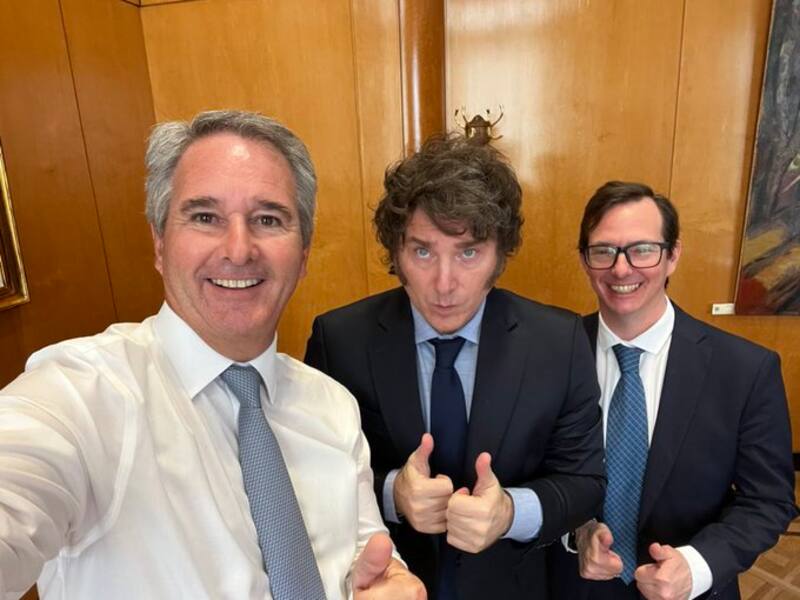 Luego del encuentro, Caputo se mostró entusiasmado con la caída del riesgo país. En su cuenta de X, escribió: "El riesgo país festejando también la visita del presidente", con una foto junto a las pantallas en tiempo real de acciones y bonos. Al perforar los 1200 puntos, se trata del valor más bajo desde abril.