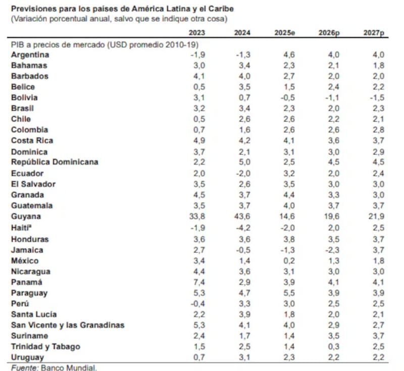 En este relevamiento, Argentina se destaca entre las economías más grandes de América Latina, con una proyección de crecimiento superior al promedio regional y por encima de países como Brasil, México y Chile.