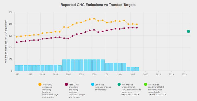 En el caso de la Argentina, el FMI detalló -con datos hasta 2018- que existe una "tendencia ascendente" desde 1990 en las emisiones de gases de efecto invernadero (GEI) notificadas en comparación con los objetivos de tendencia.