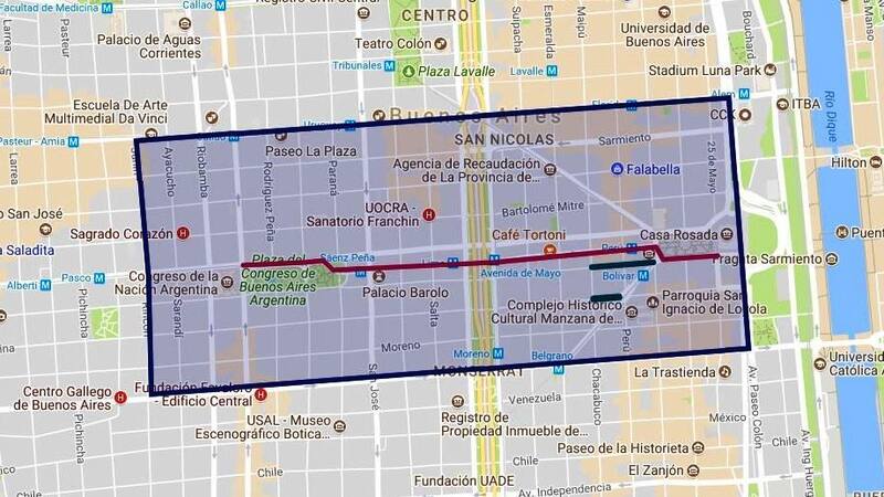 Entre las 9.30 y las 12.30, estará cortado totalmente el perímetro comprendido por av. Corrientes, av. Leandro N. Alem, av. Paseo Colón, av. Belgrano, Rincón/Junín.