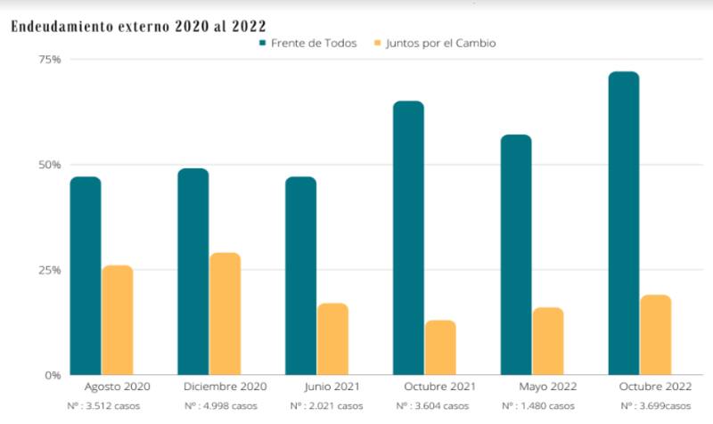 El endeudamiento externo es el principal "problema del país" según los votantes oficialistas con una tendencia de crecimiento entre agosto del 2020 y octubre 2022: pasó de cerca del 48% a casi el 73% durante el mandato de Alberto Fernández.