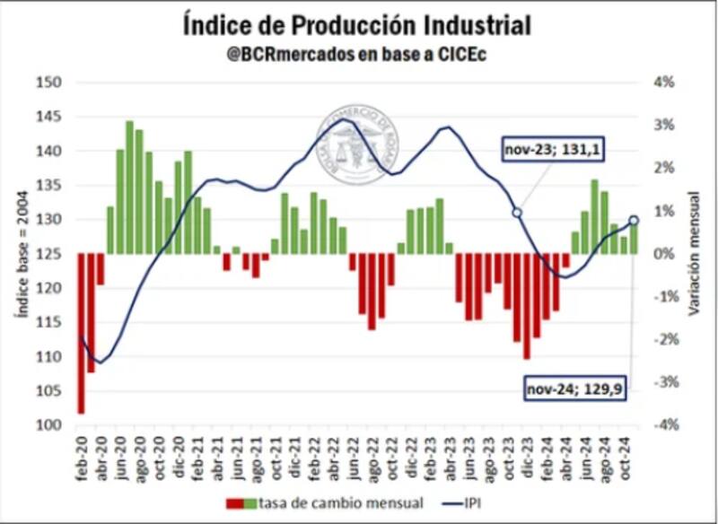 La industria manufacturera argentina evidenció una "incipiente recuperación" en los últimos meses, al presentar un crecimiento neto del 6,6% entre mayo y noviembre del 2024, de acuerdo a un informe de la Bolsa de Comercio de Rosario en base al Índice de Producción Industrial (IPI), elaborado por el Centro de Investigación del Ciclo Económico (CICEc).