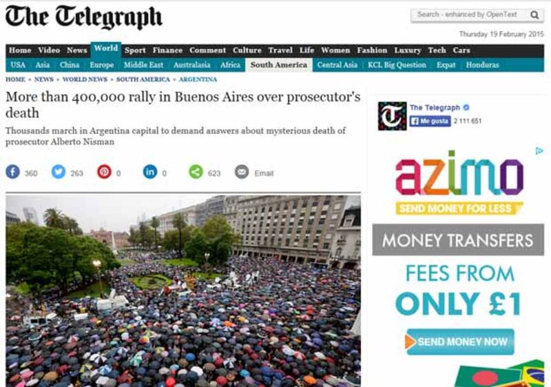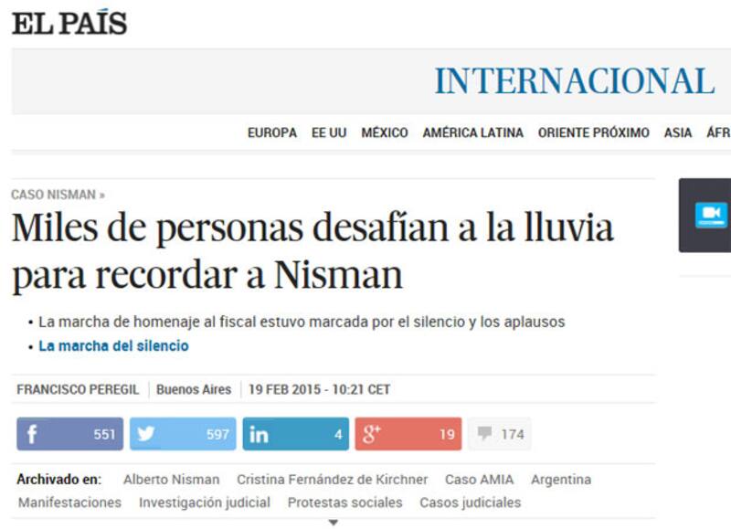 La noticia sobre la multitudinaria marcha del 18F en homenaje al fiscal de la causa AMIA, Alberto Nisman, a un mes de su muerte recorrió los portales de varios diarios del mundo. Aquí un breve repaso.