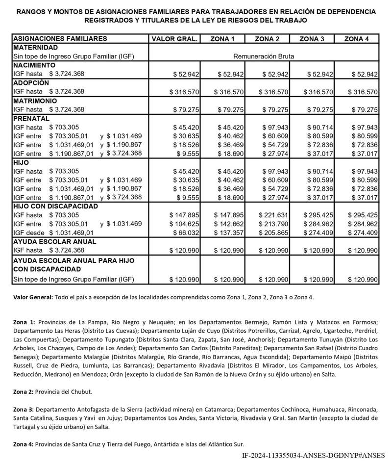 En la resolución se detallan cómo quedan los montos para cada beneficio, que varían según la zona geográfica y el nivel de ingresos: