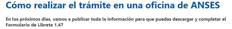 ANSES en su tramo "Cómo realizar el trámite" de la Libreta de Asignación anticipó la publicación en los próximos días de "toda la información para que puedas descargar y completar el Formulario de Libreta 1.47".