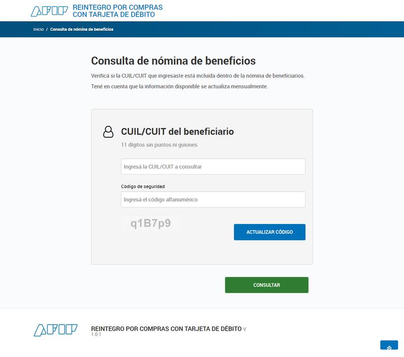 El programa de Reintegro a Sectores Vulnerados de AFIP para beneficiarios de ANSES se activa de manera mensual y consiste en un pago del 15% del monto total de los consumos con tarjetas de débito.