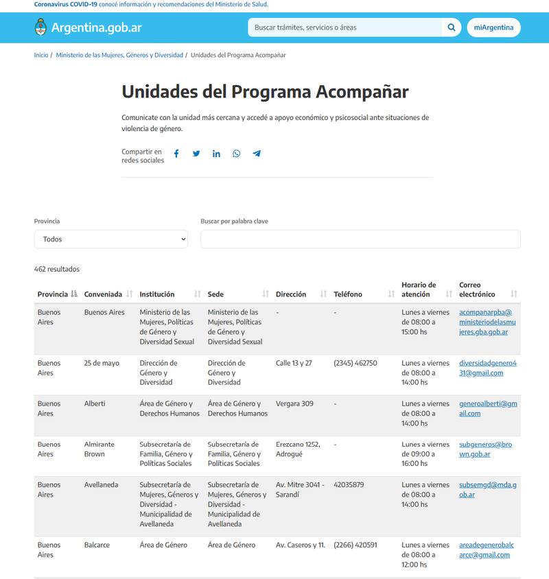 - Para consultar lugar y horarios de atención de las Unidades de Acompañamiento, se deberá ingresar a la página web oficial del Ministerio de Mujeres Géneros y Diversidad;