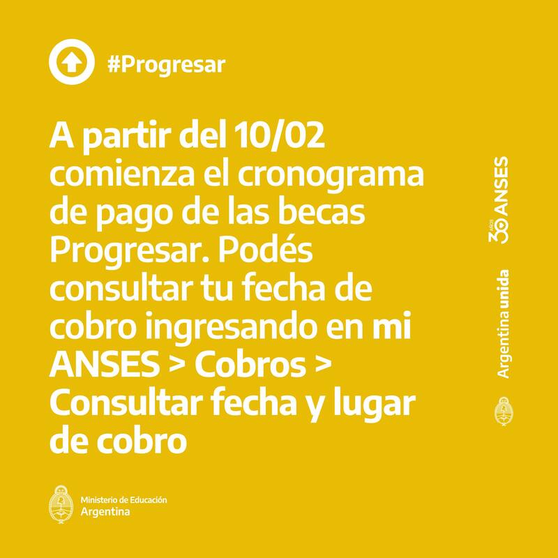 La Administración Nacional de la Seguridad Social (ANSES) junto al Ministerio de Educación, activó este jueves 10 de febrero, el nuevo cronograma de pago correspondiente a las Becas Progresar 2022para estudiantes y titulares de la Asignación Universal por Hijo (AUH) y Asignación Universal por Embarazo (AUE), inscriptos en la prestación.