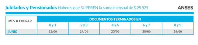 Jubilaciones superiores a 25.923 pesos