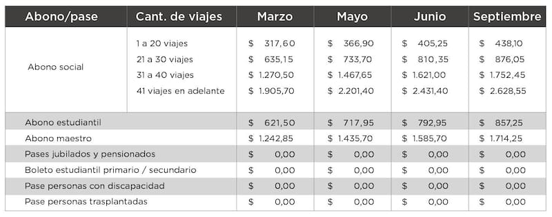 Los pasajes para jubilados y pensionados, personas con discapacidad y trasplantadas o en lista de espera seguirán en curso. Asimismo, se mantendrá el boleto estudiantil y los abonos social, maestro y estudiantil, para alumnos de escuelas secundarias y tercerías.