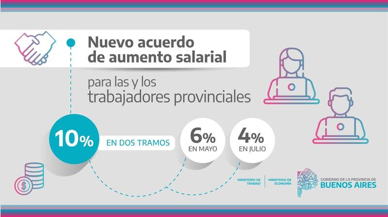 Tal como informó el Gobernador, se aplicará un incremento de un 10%: por un lado, con los haberes de mayo se verá un 6% sobre el salario de marzo; mientras que, en julio, se completará con el otro 4%.