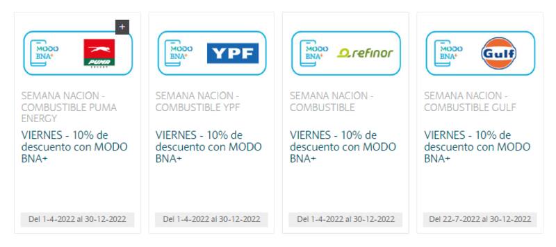 - Banco Nación: 10% de descuento con MODO BNA+ todos los viernes en Axion Energy. Aplica a tarjetas de Crédito Visa y Mastercard emitidas por el Banco Nación. El tope de descuento es de $ 400 en la primera transacción. Valido hasta el 30 de diciembre de 2022.