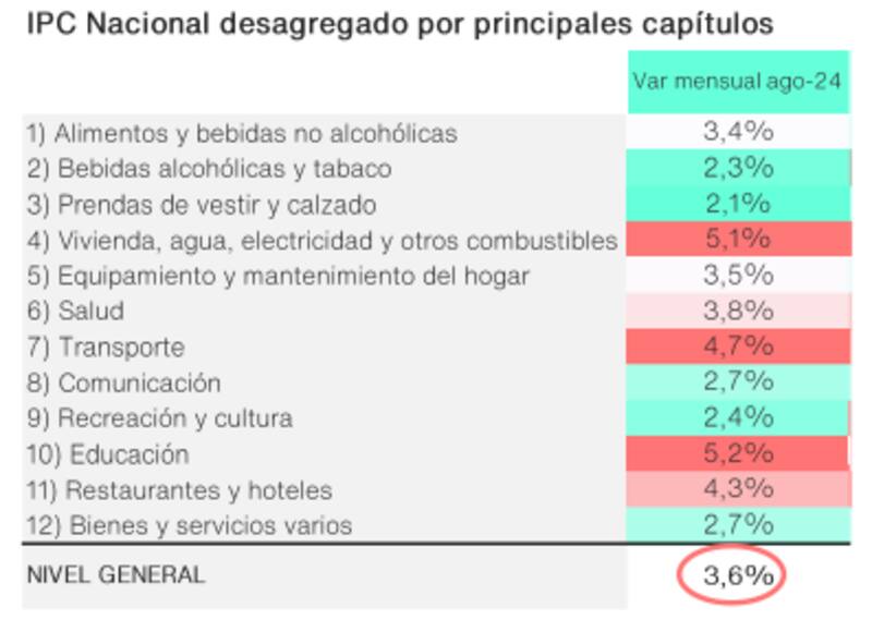 Al ahondar en las categorías, Educación encabezaría por encima de la general con 5,2%. Lo habrían continuado Vivienda, agua, electricidad y otros combustibles, con 5,1%.