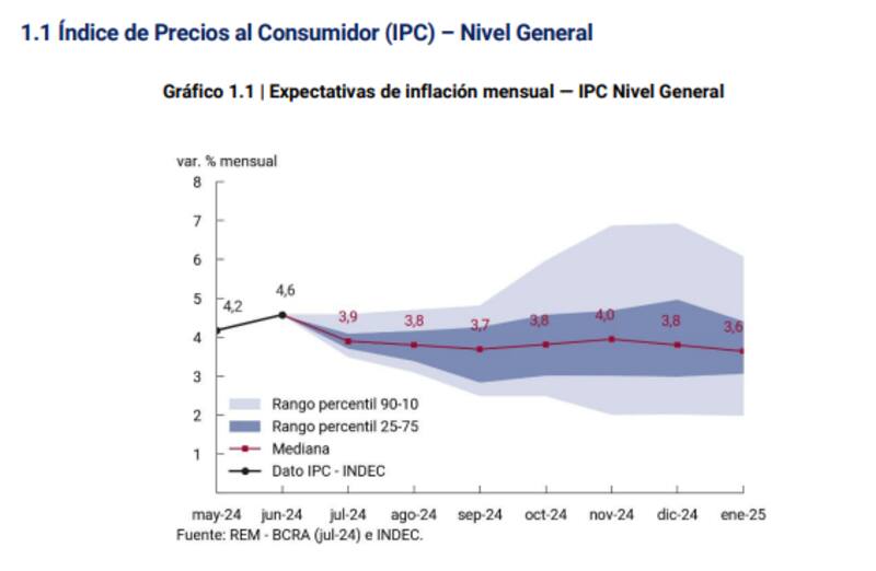 "En el séptimo relevamiento del año, quienes participaron del REM estimaron una inflación mensual de 3,9% para julio", puntualizaron las 28 consultoras y centros de investigación locales e internacionales y las 14 entidades financieras locales.