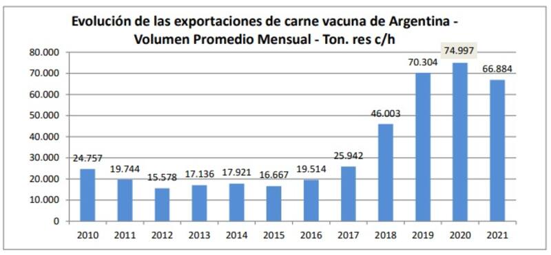 En los últimos doce meses las exportaciones del complejo cárnico (refrigeradas, congeladas con y sin hueso, se ubicaron en volúmenes cercanos a las 920,7 mil toneladas equivalente res con hueso; superando los u$s 2700 millones.