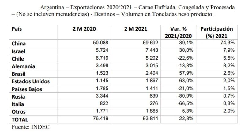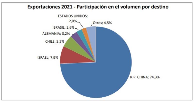 Esto se da en un escenario internacional en el que la República Popular China sigue capturando tres de cada cuatro toneladas exportadas por nuestro país, lo que tiene incidencia también en el monto final de las exportaciones del rubro que ese país compra cortes de menor valor.