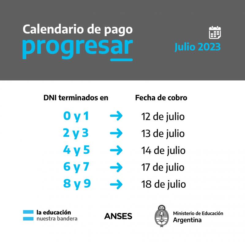 La Administración Nacional de la Seguridad Social (ANSES) continúa con las últimas liquidaciones de junio, en tanto el Ministerio de Educación confirmó el calendario de pagos de las Becas Progresar de julio 2023.