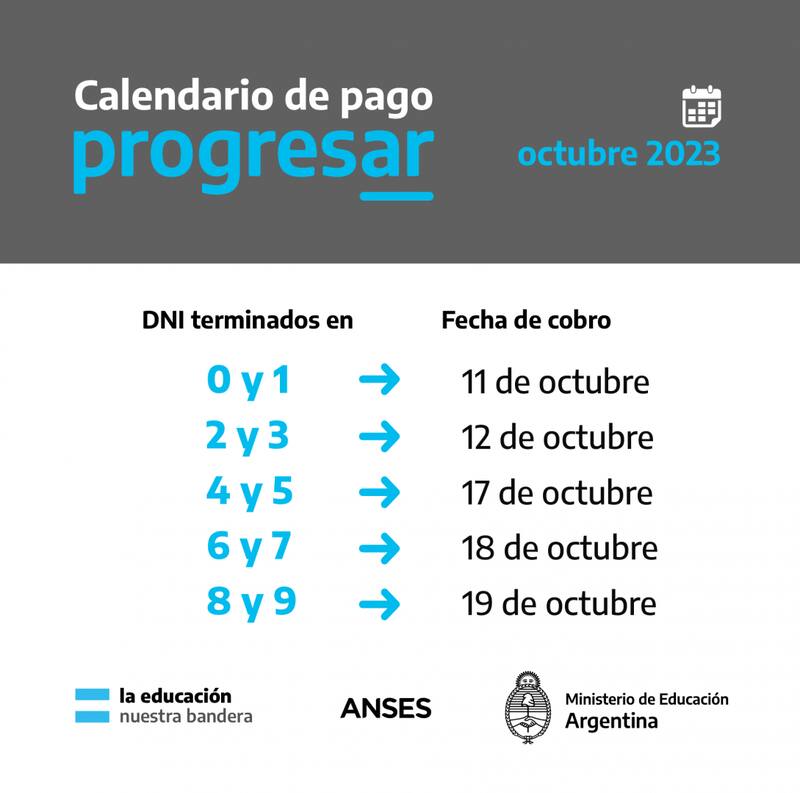 El Ministerio de Educación, a través de la Administración Nacional de la Seguridad Social(ANSES), activará el calendario de pagos para los beneficiarios de las Becas Progresarel miércoles 11 de octubre.