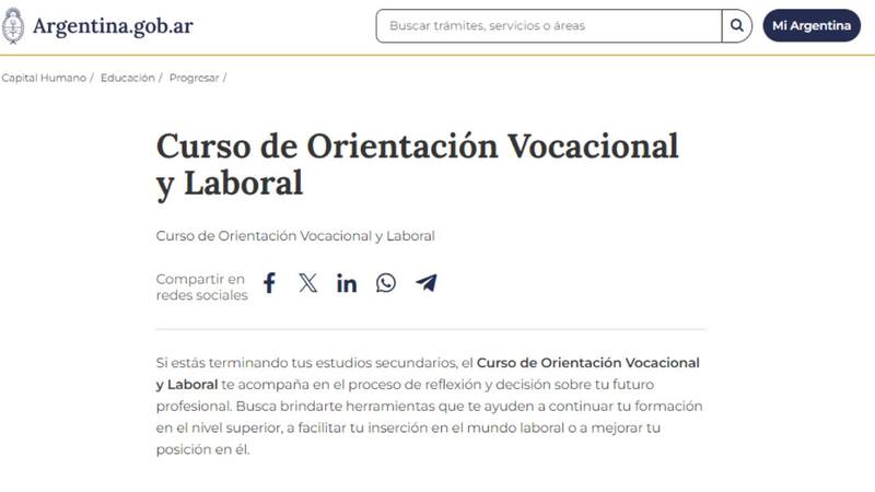 "Recordá que tu participación en el Curso de Orientación Vocacional y Laboral es obligatoria. Esta actividad forma de los requisitos para el cobro de tu beca Progresar. Al finalizar el plazo de duración del curso, el aula quedará inhabilitada y no podrá volver al ingresar", repasó Educación.