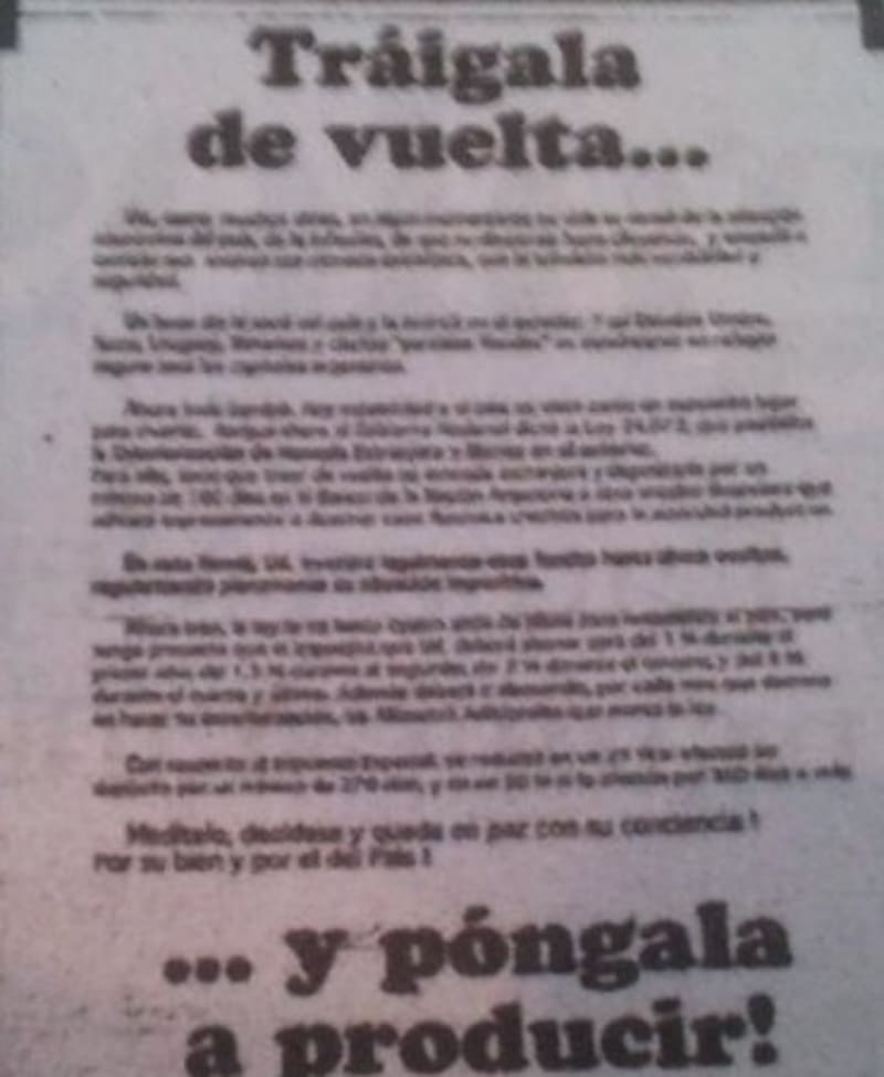 En ese momento el Estado proyectó quelos argentinos tenían bienes y dinero sin declarar fuera del país por más de u$s 160.000 millones.