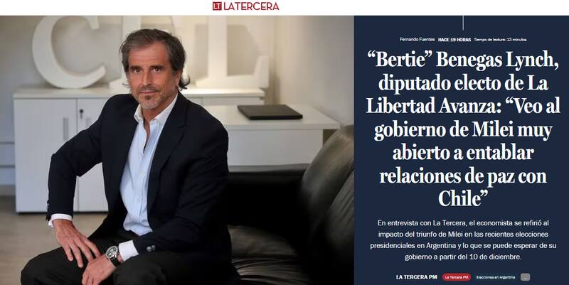 En diálogo con el portal chileno La Tercera e invitado al país trasandino por el Centro de Estudios Libertarios, el legislador próximo a asumir el 10 de diciembre insistió en que el programa apuntará a dar por finalizado el esquema por el cual, según detalló, se produce el "robo de la política".