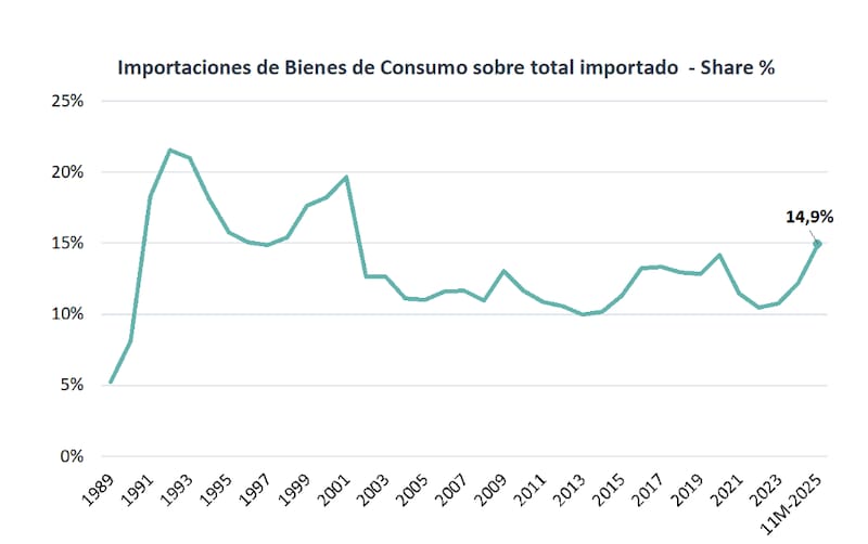 Según el último informe de la consultora Abeceb, 2025 finalizará con volúmenes de importación récord, superando en un 3,1% el máximo histórico de 2017 y triplicando el promedio de la década de los 90.
