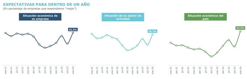 Las empresas consideraron que su situación actual está peor que hace un año. Esto se ve tanto en las percepciones sobre la propia empresa (59%), como en la situación del sector de actividad (54%) y el país (81%).