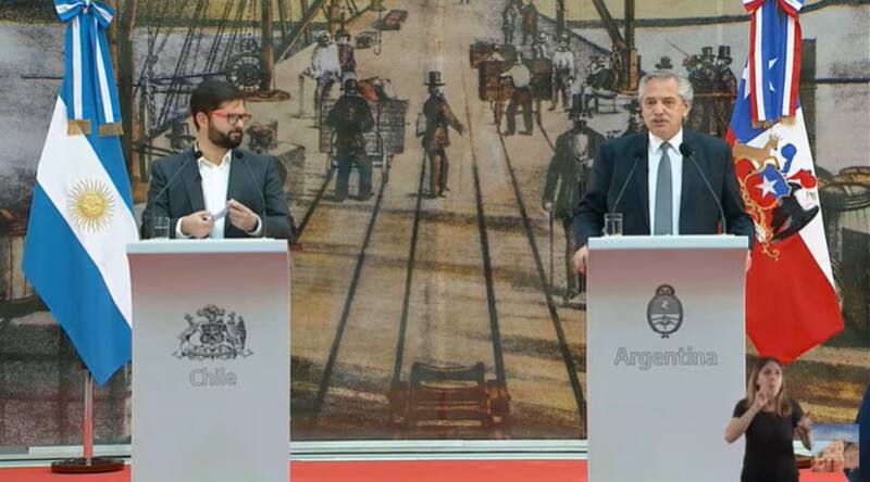 De su parte, el mandatario argentino dijo que "valoro enormemente" que Boric viajara a Argentina "en su primer salida como presidente" y destacó que "América Latina es una zona de paz, y cada día hace más esfuerzos porque la democracia y la institucionalidad se preserven y profundicen".