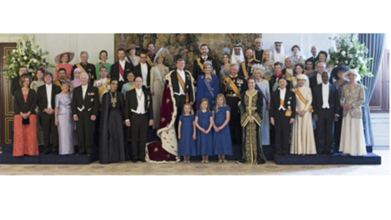 El vicepresidente Amado Boudou, representante del Gobierno en los Países Bajos para la ceremonia de entronización de Guillermo de Orange y la argentina Máxima Zorreguieta como reyes de Holanda, y la presidenta provisional del Senado, Beatriz Rojkés, participaron de la foto oficial con los nuevos monarcas tras su entronización.