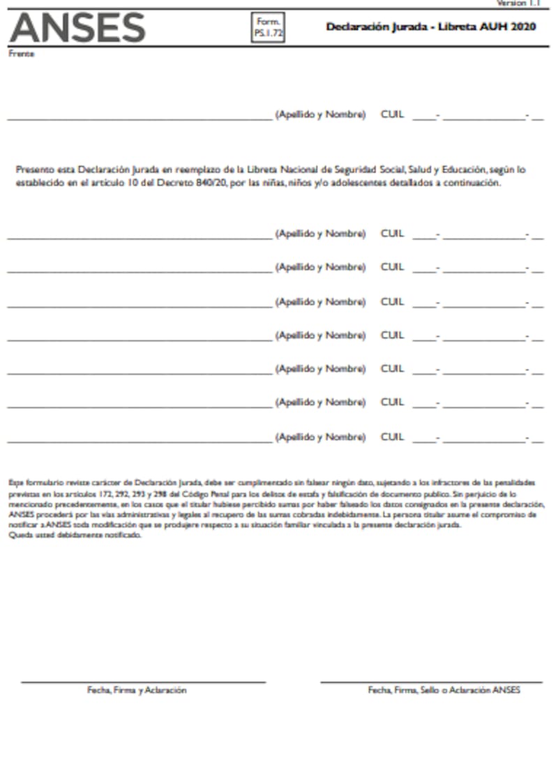 ANSES anticipó en redes sociales que el cobro del monto extraordinario para AUH se hará efectivo en los meses siguientes, "una vez realizada la Declaración Jurada".