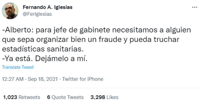 "No creo ni en la fortaleza de Cristina ni en la debilidad de Alberto: es una estafa electoral, que sólo le ha hecho daño al país", sentenció. Asimismo, fue muy crítica de la figura de Santiago Cafiero, su salida de la Jefatura de Gabinete y su designación al frente del Ministerio de Relaciones Exteriores, Comercio Internacional y Culto.