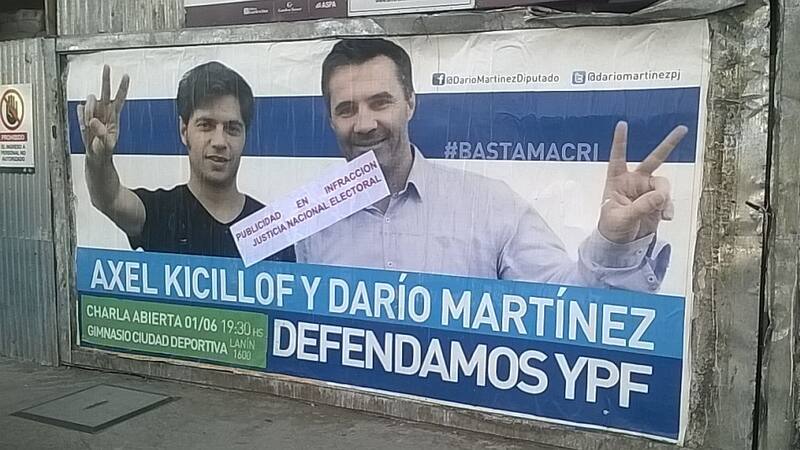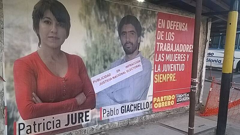 En total se colocaron fajas a 25 carteles correspondientes a la alianza Cambiemos, Frente para la Victoria, Partido Obrero y Partido de los Trabajadores Socialistas.