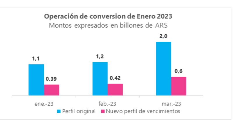 De esta forma, el Tesoro tendrá que afrontar vencimientos de deuda por unos $ 390.000 millones en enero (contra los $ 1,1 billones previstos); $ 420.000 millones en febrero (frente a $ 1,2 billones originales); y $ 600.000 millones en marzo (ante $ 2 billones anterior a este canje). El total de este nuevo perfil suma algo más de $ 1,4 billones en el primer trimestre.