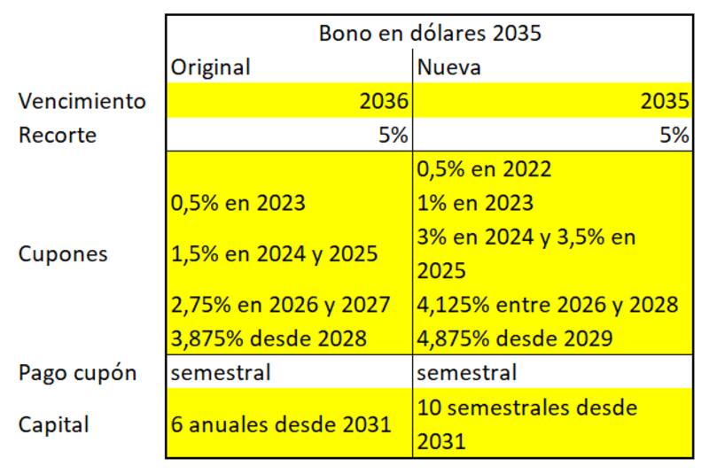 En la oferta original estos papeles maduraban en 2036; en la nueva propuesta el vencimiento pasa a 2035.