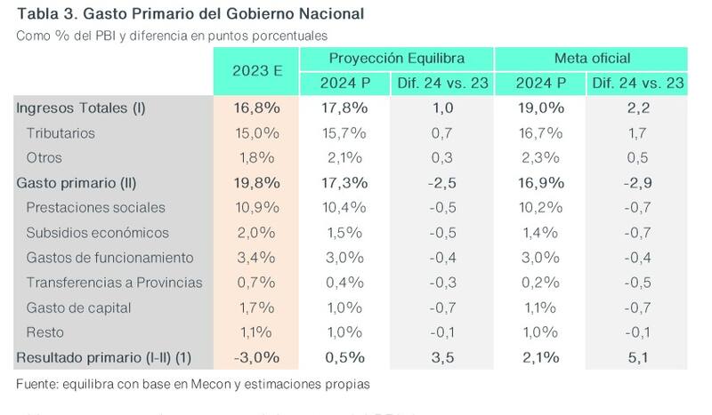 A su vez, anticiparon una "significativa" reducción de subsidios, en particular en a la energía y el transporte, en continuidad con la reducción de partidas de 0,6% del producto que se dio en 2023.