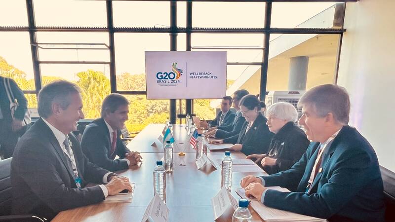 El ministro de Economía, Luis Caputo, se reunió con la secretaria del Tesoro de los Estados Unidos, Janet Yellen, en el marco de las bilaterales del G20 en San Pablo.