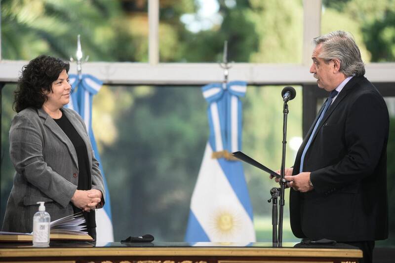 La flamante ministra prestó juramento en Olivos ante el presidente Alberto Fernándezy el escribano general del Gobierno, Carlos Gaitán, en una breve ceremonia que incluyó la lectura del decreto oficial y que contó con la presencia de miembros del gabinete nacional y del presidente de la Cámara de Diputados, Sergio Massa.