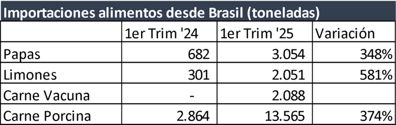 Respecto de Brasil, se observa una creciente importación de productos alimenticios que se producen en la Argentina.