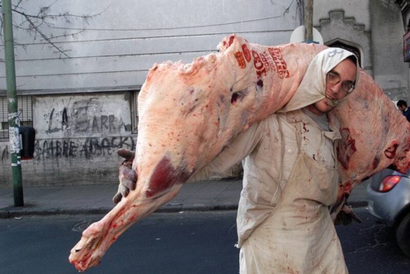 Más allá de la vigencia de la medida, en los barrios aún se ve por las mañanas a personal de las empresas frigoríficas bajando las medias reses a hombro, un modo de comercialización enraizado en el país desde hace más de cien años.