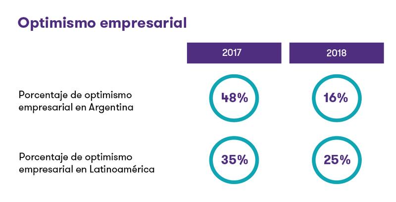 "El optimismo empresarial en Argentina cayó drásticamente en el primer trimestre, alcanzando un 16% neto, con una caída de 32 puntos porcentuales en relación al año pasado", indicó la compañía en un comunicado de prensa.