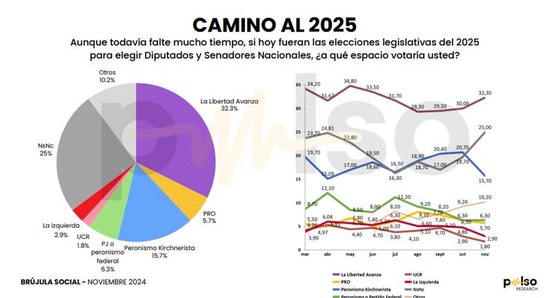 Esto marca el último relevamiento de la consultora Pulso Research, realizado entre el 4 y el 11 de noviembre de 2024, el cual arrojó datos claves sobre la intención de voto de cara al año entrante, con buenas noticias para Milei y su equipo.