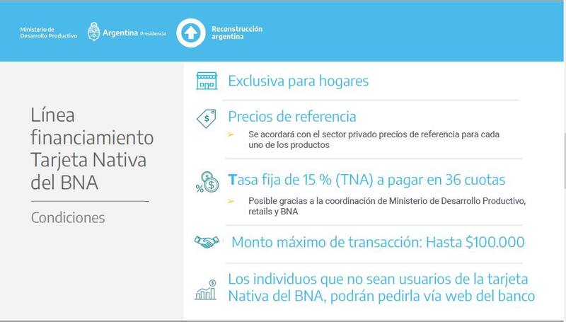 Los créditos para los electrodomésticos serán puestos en marcha por el Banco Nación por hasta $ 100.000, con una tasa fija del 15% a 36 meses.