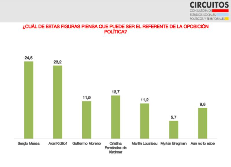 Sergio Massa aparece como la más representativa, segundo el gobernador bonaerense, Axel Kicillof, quien busca imponerse en la interna peronista, y tercera Cristina Fernández de Kirchner, quien realizó su primera aparición pública la semana pasada tras la derrota electoral.