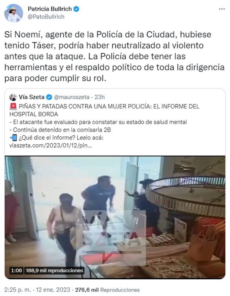 Primero fue Patricia Bullrich, quien fue ministra de Seguridad durante la presidencia de Mauricio Macri, la que consideró que si la policía agredida hubiese tenido una pistola Táser "podría haber neutralizado al violento antes que la ataque".