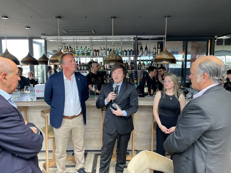 Incluso, el presidenciable libertario dejó más perlitas afuera del almuerzo que adentro del mismo. En una rueda de prensa al ingresar al restaurant, aseguró que "es irresponsable agitar el fantasma del default" y que su plan para dolarizar sigue intacto porque "cuanto más suba el dólar más fácil va a ser".