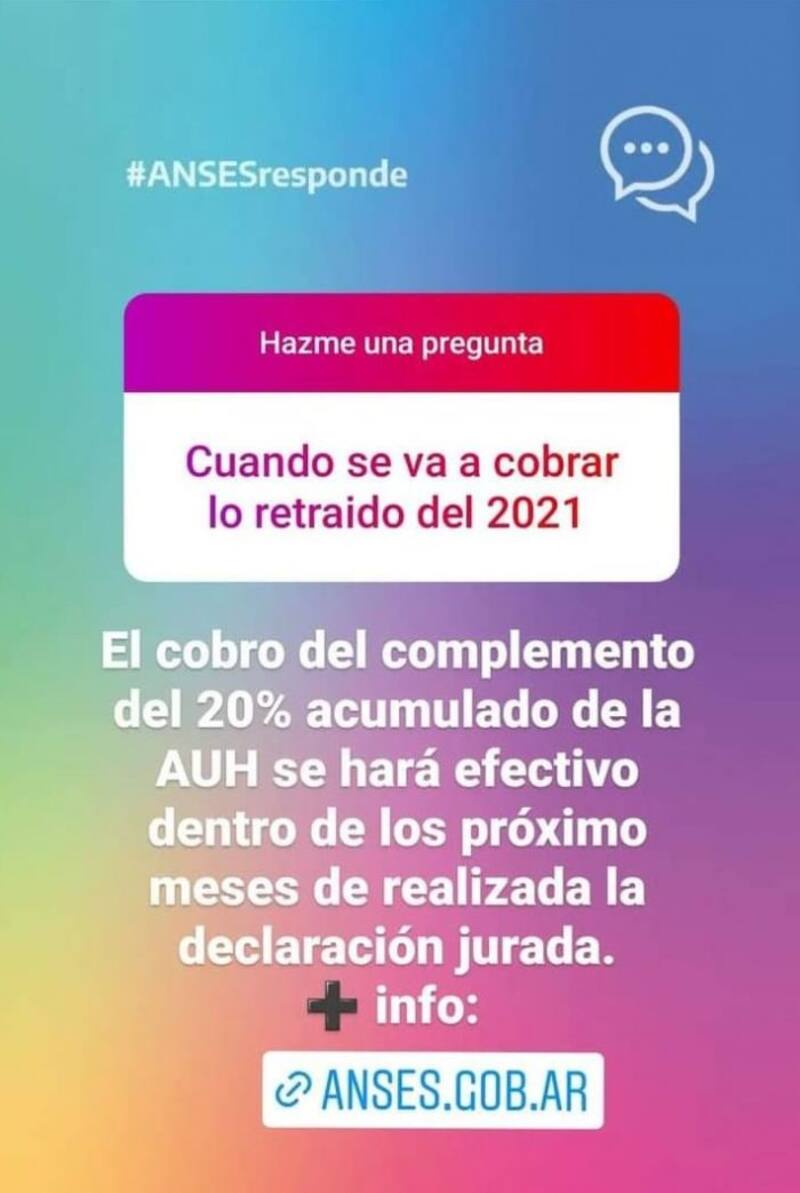 "El cobro del Complemento del 20% acumulado de la AUH se hará efectivo dentro de los próximos meses de realizada la declaración jurada".