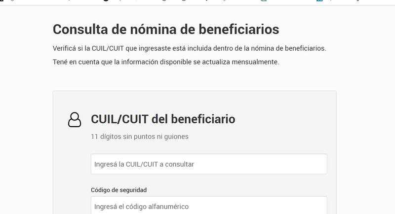 Una vez en la plataforma, se debe ingresar la CUIL o CUIT sin utilizar guiones ni espacios, y completar el código de seguridad solicitado. Posteriormente, se debe hacer clic en "consultar".