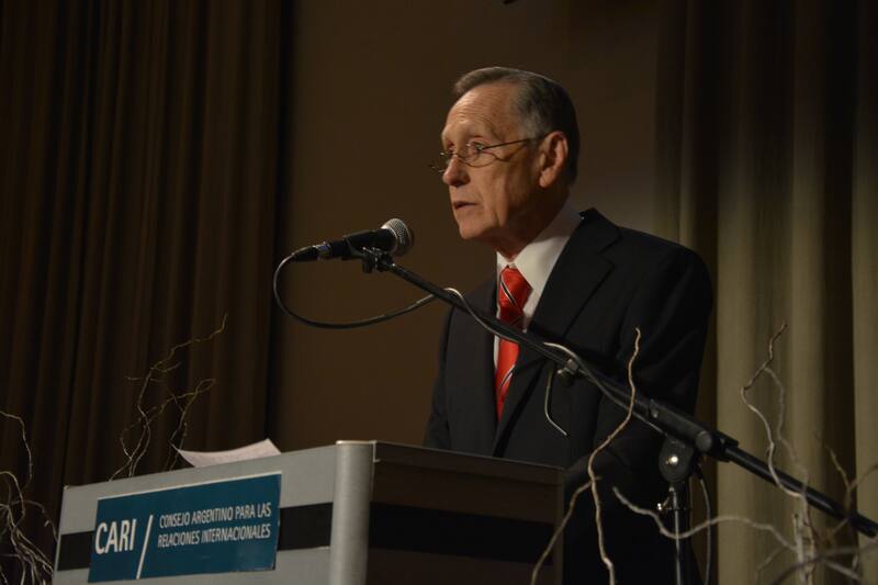 Al hablar después del anfitrión de la noche, el excanciller Adalberto Rodríguez Giavarini (titular del CARI), Faurie defendió la "política de inserción inteligente" de Macri tras los "años de encierro" y destacó que gracias a ese reposicionamiento internacional la Argentina logró una fuerte ayuda externa en la búsqueda del submarino ARA San Juan.