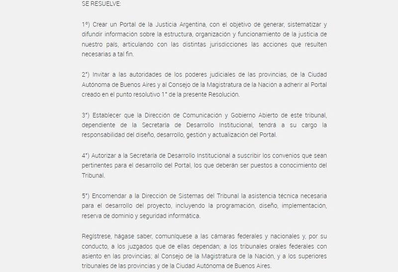 Según esgrimieron los tres jueces que avalaron la creación del portal, en la actualidad "no existe un espacio oficial que dé cuenta del entramado completo de la justicia argentina -del Poder Judicial de la Nación, de los poderes judiciales provinciales y del de la Ciudad Autónoma de Buenos Aires-" y que "ponga a disposición de la ciudadanía y los agentes judiciales toda esa información organizada y normalizada".